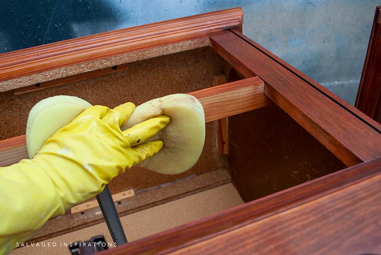 And then giving these nightstands a good cleaning with this TSP substitute. I made sure to lay them on their backs and clean the entire inside as well.