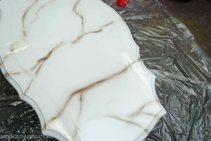 Tip ~ If you’re unsure of where to paint your faux marble lines, I found it helpful to look online at different marble patterns. Then I had a template on what sort of pattern to use.