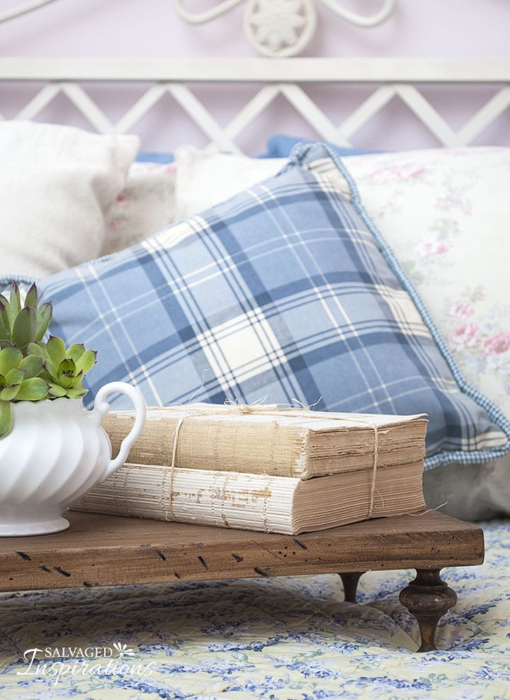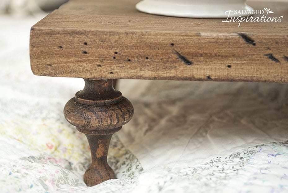 Thanks Kay! If you can’t find one to buy, and don’t want to bust up a chair 😉 an easy way to create one is to buy a piece of wood from Home Depot (they will even cut it to size), and then glue on four pre-manufactured wood finials. Paint or stain to fit your decor… voila!