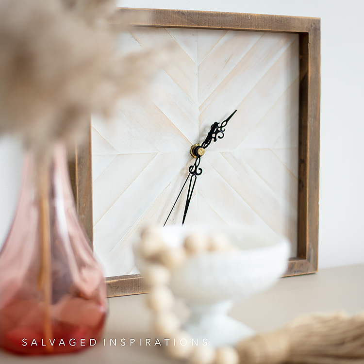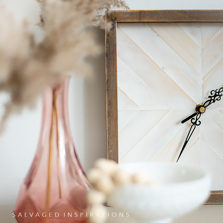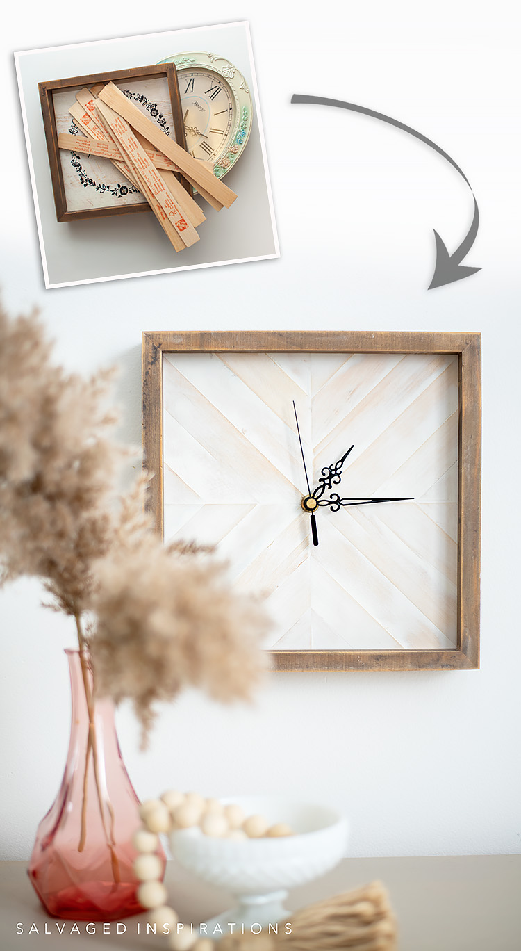 It’s Trash to Treasure Tuesday friends – the first of 2022 and I’m excited to share this EASY DIY with you! Here’s how to create a DIY Wood Clock Using Paint Sticks. This turned out amazing — even better than I imagined! I’m also sharing my blogging besties T2T makeovers below so I hope you check them out as well. Oh, and if you read last week’s 2021 Furniture Stories | Where Are They Now? I haven’t forgotten about those 90’s cherubs. I’ve decided to give those a makeover in the warmer weather so I can style them in my garden. 🙂