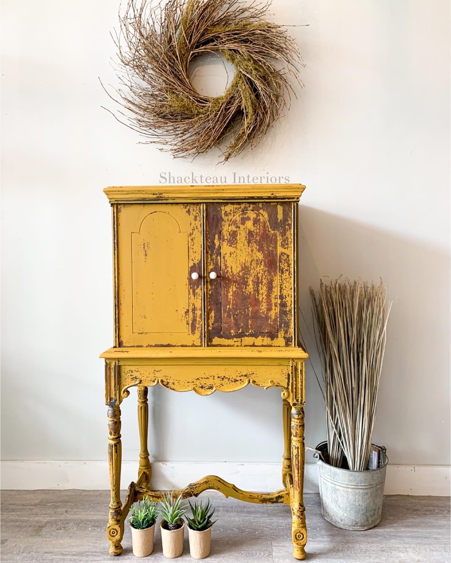 I’m smitten with this next makeover. Kristen at Shackteau Interiors used Shackteau Interiors Milk Paint in Dusty Yellow and sealed it with hemp oil. If you’re looking for new IG accounts to follow, Kristen posts the most beautiful makeovers.