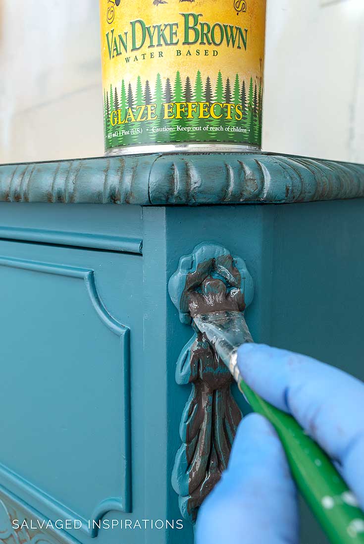 I have a dresser that I need to paint and I think Antellum Blue is the color I want to go with. Only my dresser is not ornate like yours. I’m wondering if I can Glaze around the edges ?