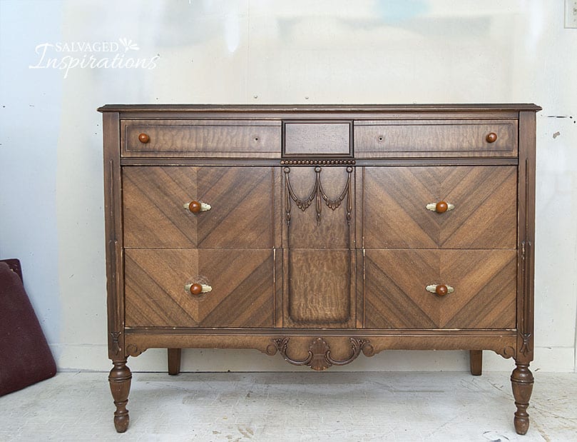 This piece is a little scratched and banged up, it’s missing a few pulls, and two of the drawers need reinforcing. None of this was shown or described in the online ad (other than the missing pulls), but that’s okay. I still found it attractive and irresistible. With a little TLC, it will be better than new. 🙂