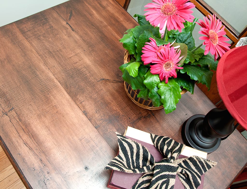 That is great. I have taken the veneer off top of a dresser. The wood under it was prettier. Good job. Red is my accent color in my home . Thanks for sharing.