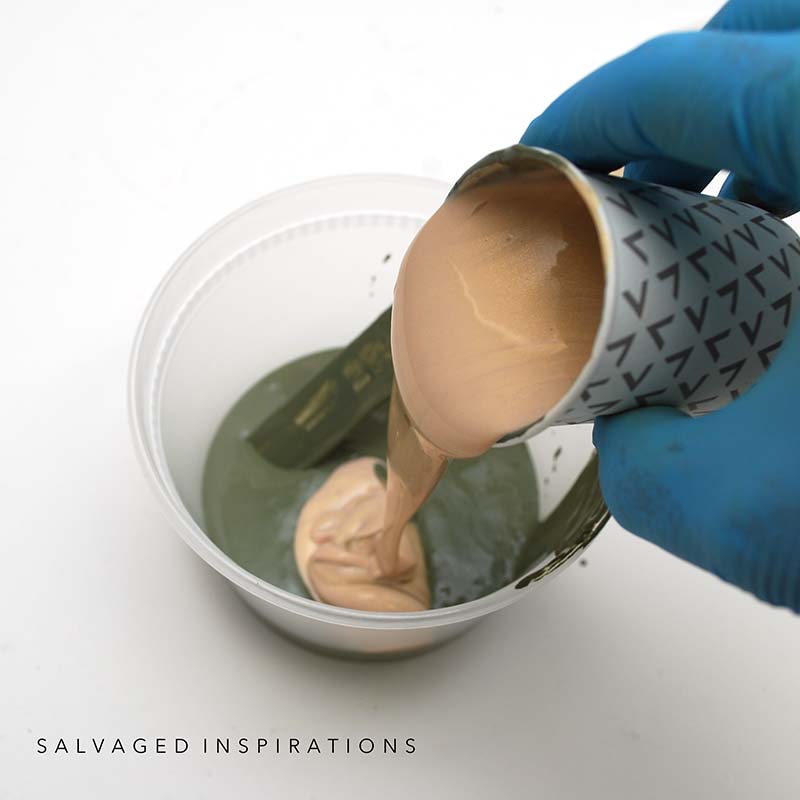 As I mentioned this was a piece I did last fall. It already had a base color of Juniper which is no longer available as it was a limited edition. A recipe to get this exact same green is to mix equal parts Kudzo + Collard Greens. I have a full post and free download recipe card for all these trendy FALL COLORS HERE.