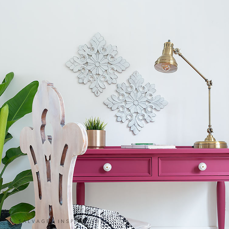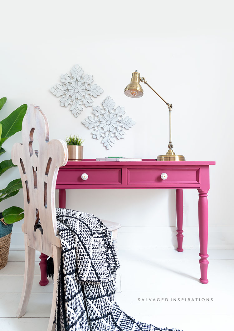 To give this desk a fresh new look, I decided on this Plum Crazy because it’s a crazzzzy good color! It’s the deepest shade of pink with purple undertones that’s versatile enough to hold its own in a sophisticated setting — yet fun enough to be in a kid’s room!