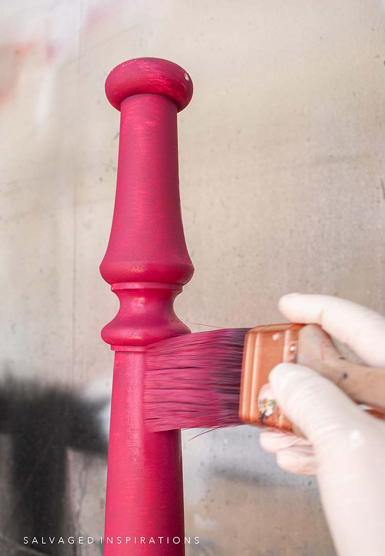 I applied two coats and used my Slap-It-On-Technique to paint these spindles. If you ever have a circular spindle to paint, I have a full Youtube Tutorial on How To Paint Spindles WITHOUT Brushmarks here. Works perfectly and easily every time!