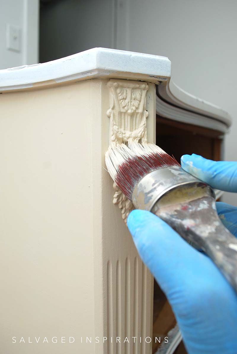 For the paint color, I choose a warm neutral — this Sand Castle Silk All-In-One Mineral Paint. This Silk paint has a primer and topcoat included which is a time saver. I love spraying this paint but it’s self-leveling and brushes on beautifully as well.