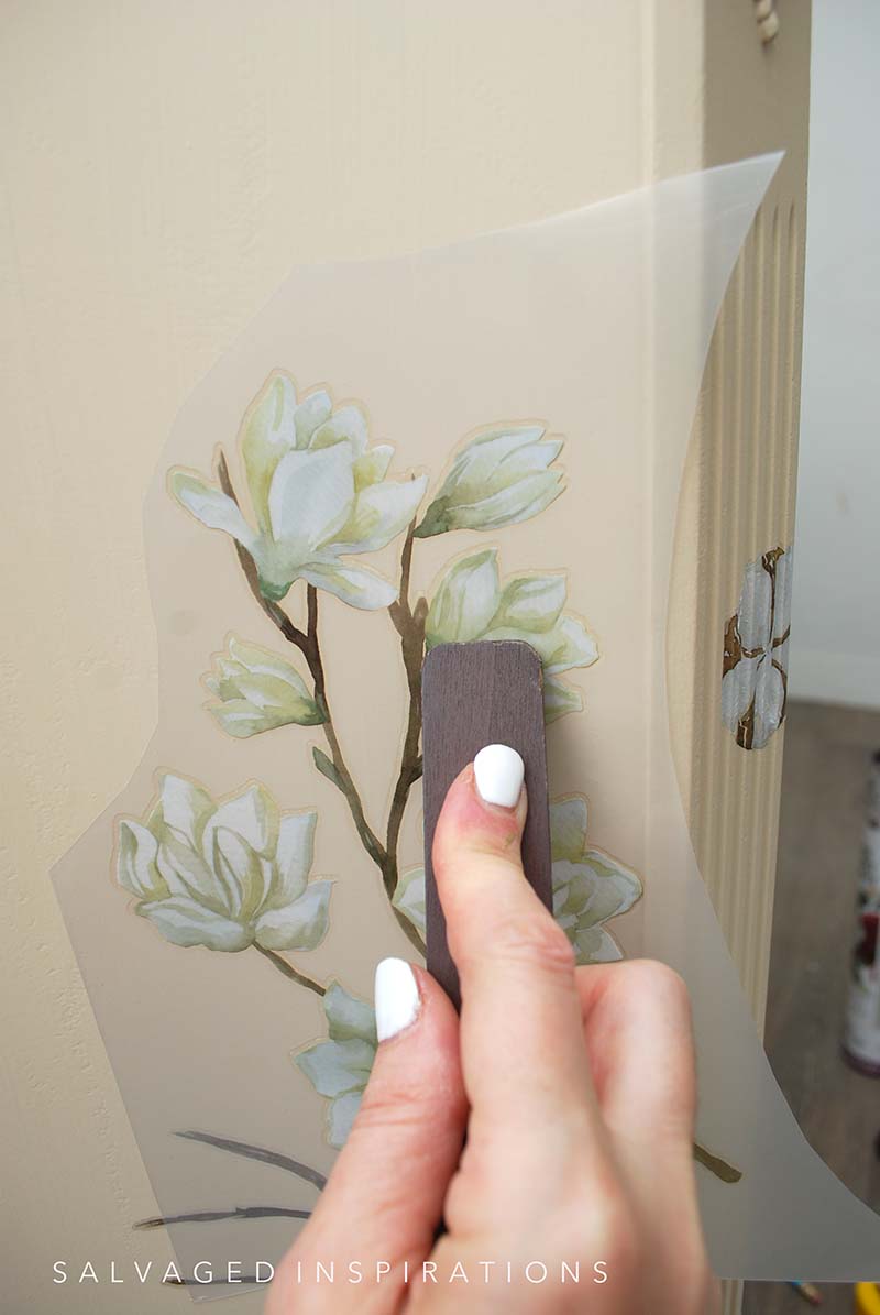 Thanks so much and easy peasy Suzy!😉 I start with the placement I want and then adhere the transfer design to the largest surface. THEN work my way around the details. If you’re interested in seeing it go on, I’ll be sharing in this Saturday’s Youtube tutorial… which I’ll also embed in this post once it’s published as well. XOXO