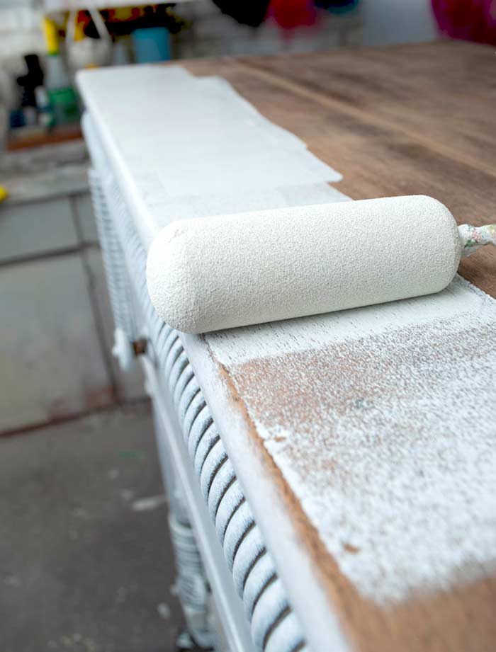 For the base coat, I painted two coats of this gorgeous French Linen.