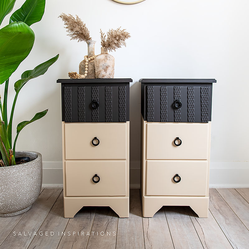Denise, these look great! I’m a sucker for vanities and desks to turn into nightstands, just bought a vanity this week! These are so distinctive! and I love the hardware you chose too!