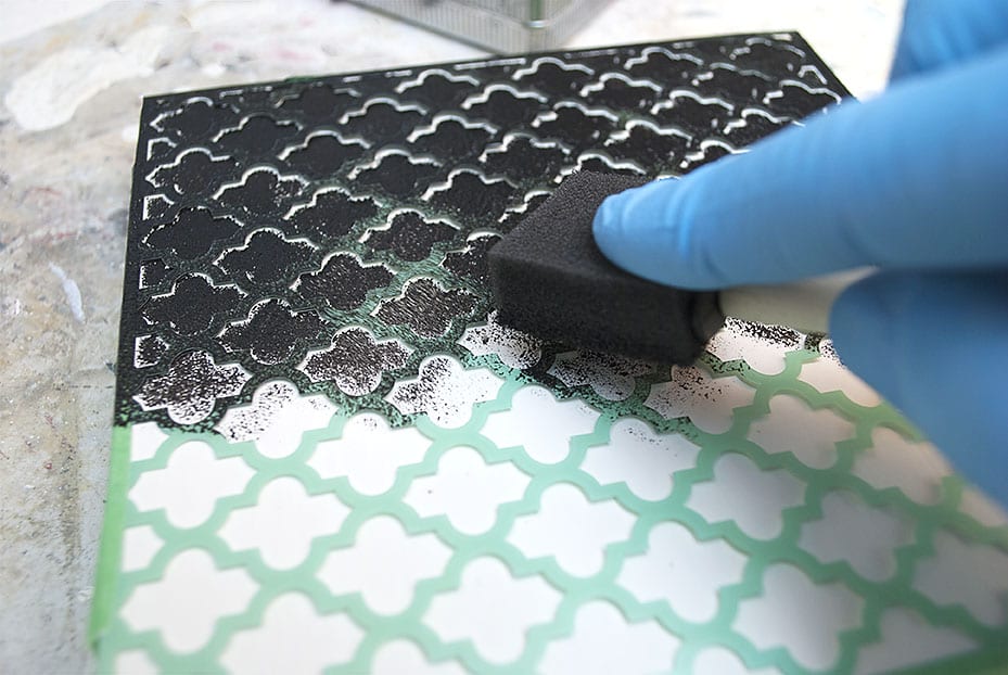 I painted the base coat in this white and stenciled the lattice in this black. This Heidi Swapp Lattice Stencil is perfect for small projects!