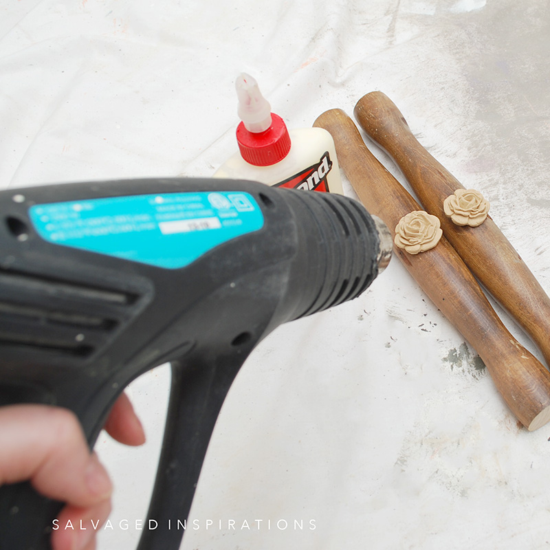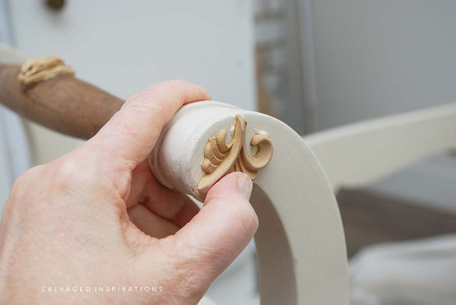 To hide the holes on the chair spindles and the holes on the frame, it was Woodubend to the rescue! I keep all my little bits and pieces of Woodubend because they not only hide imperfections but make everything look beautiful as well!