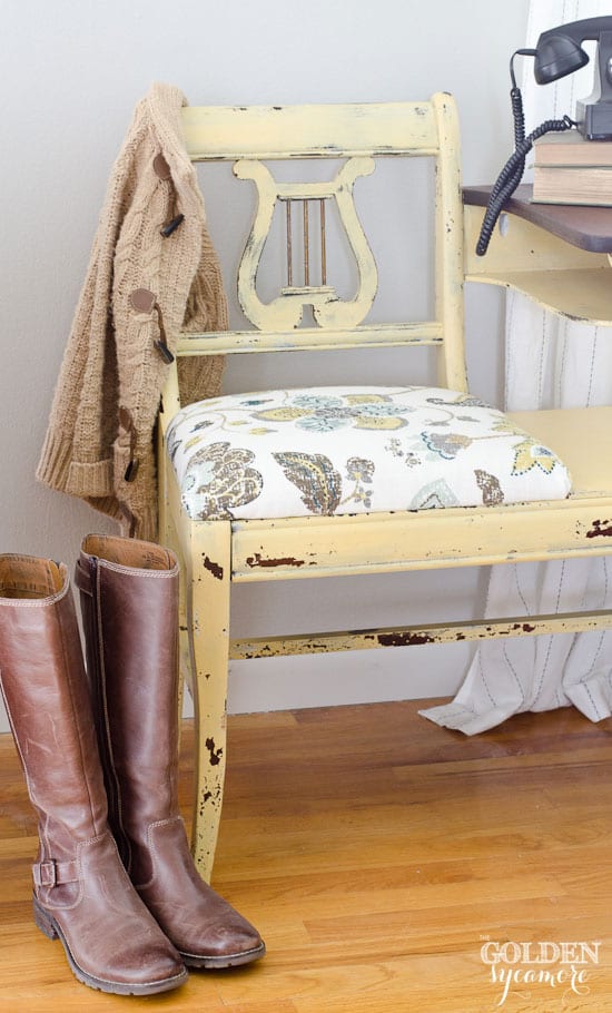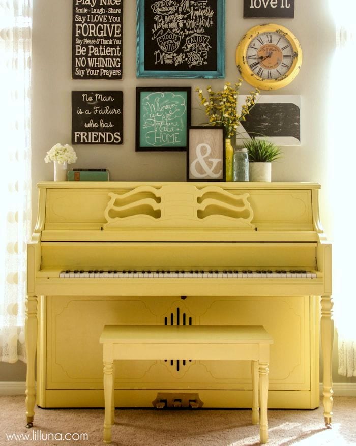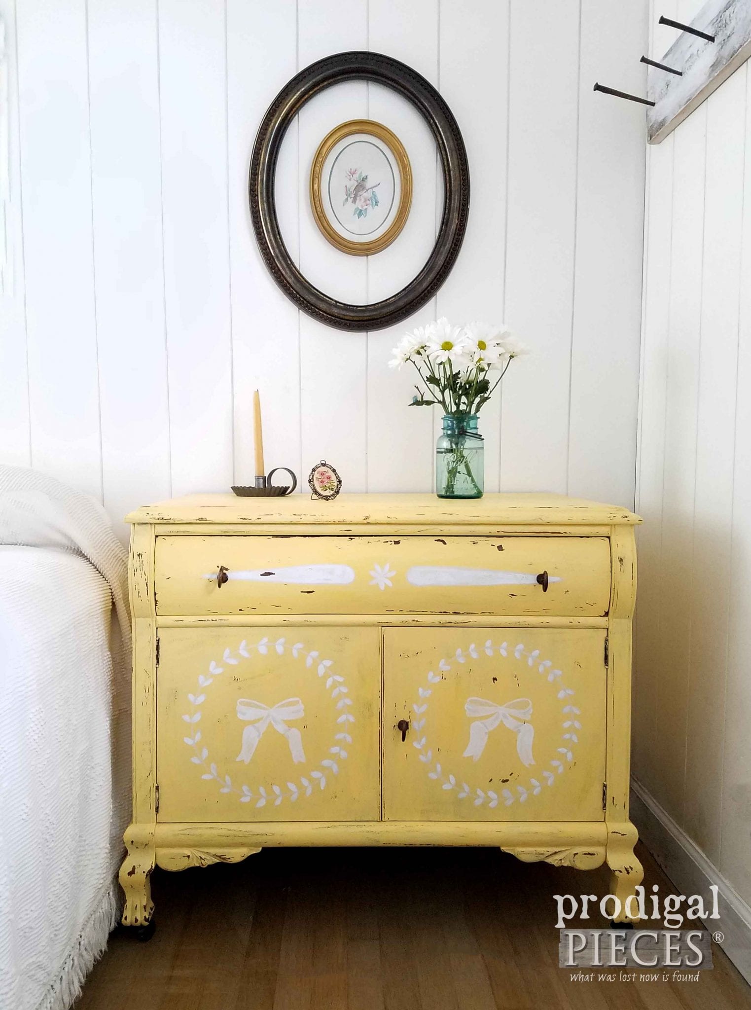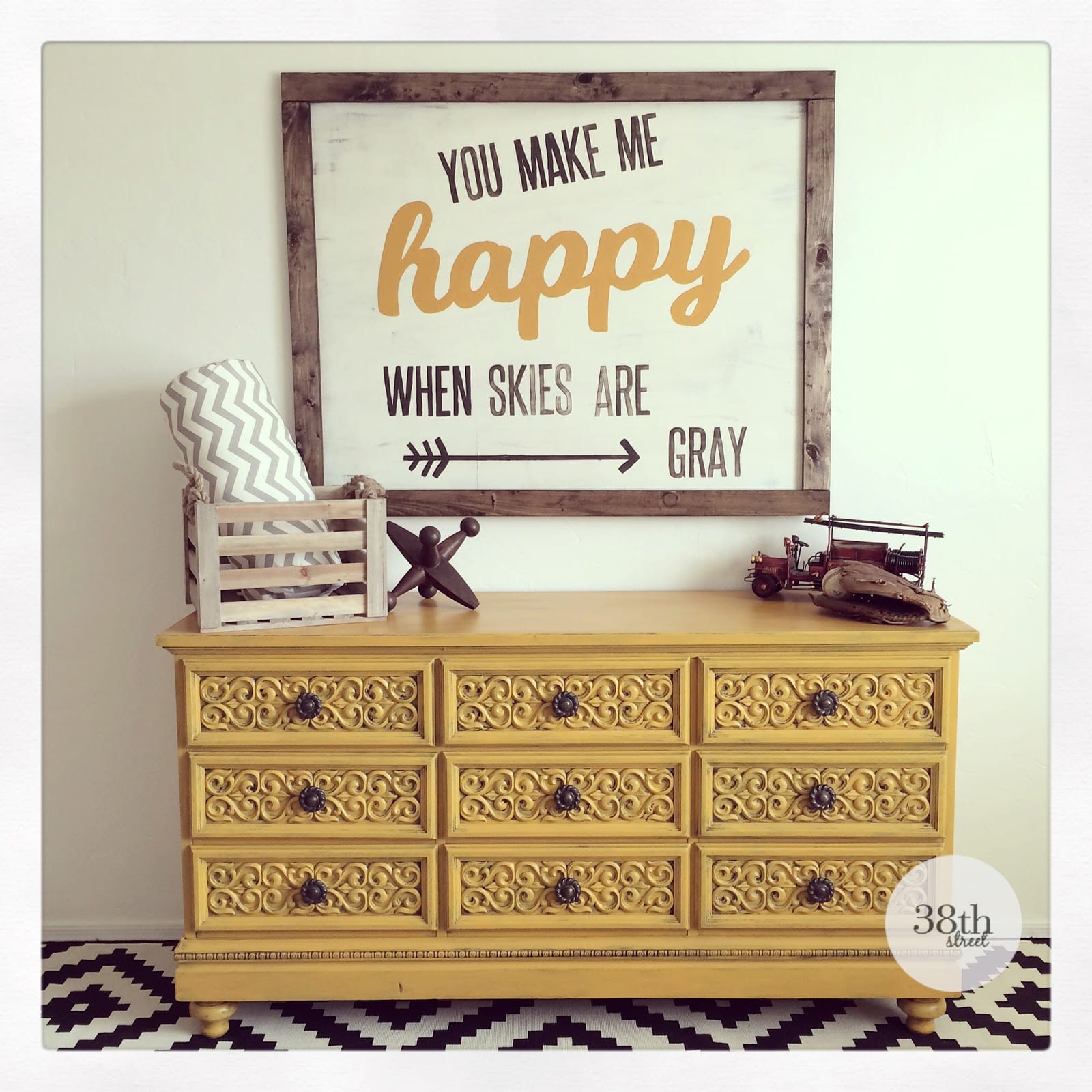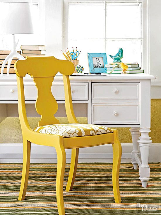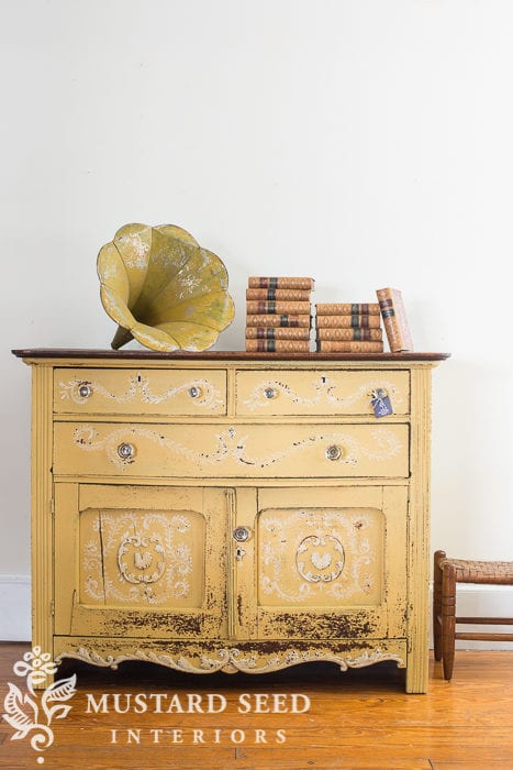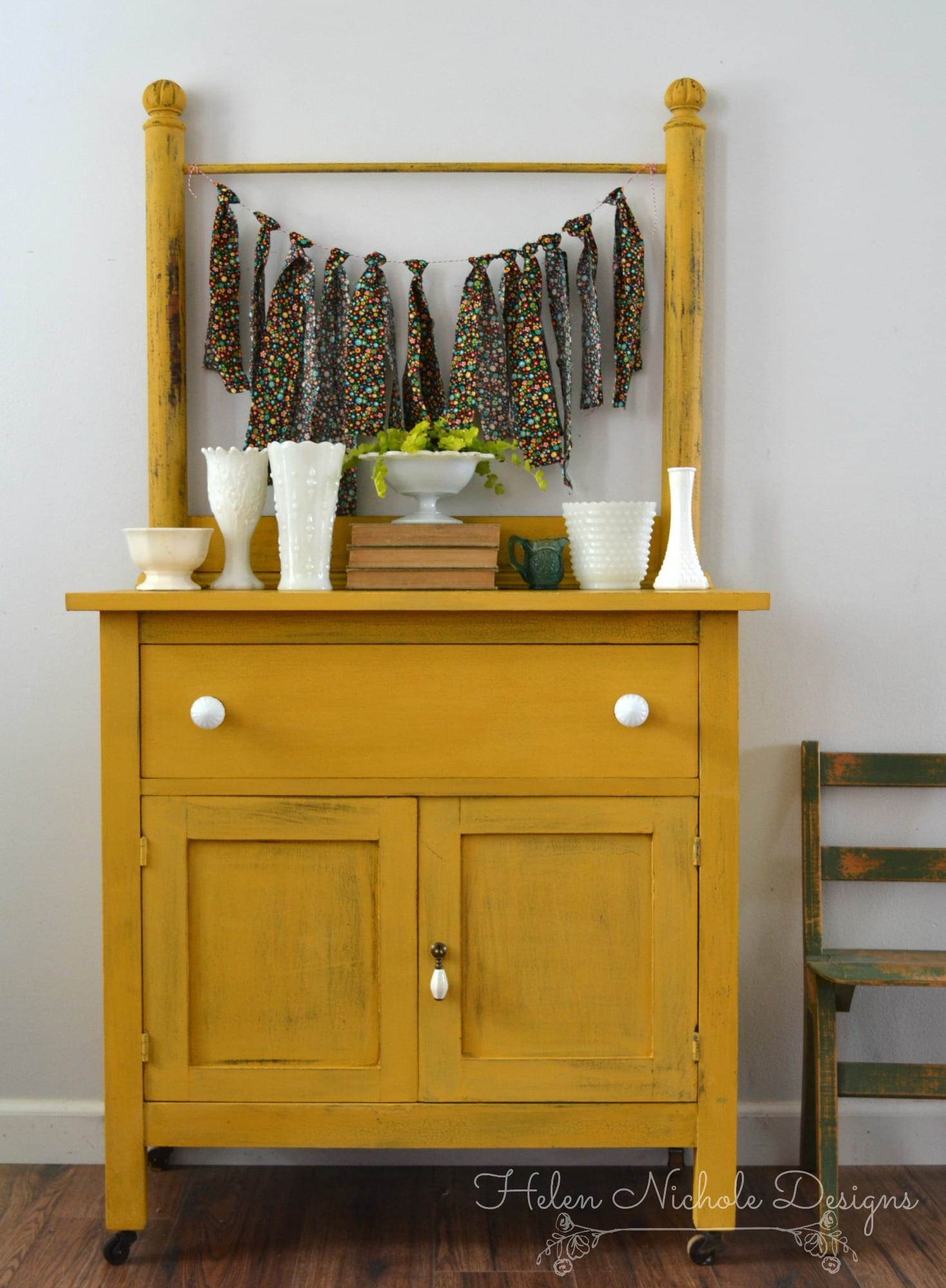 We had fun with our last Think Pink and Think Green roundup, so today I’m sharing 25 Beautiful Furniture Makeovers in various shades of sunshine. I picked this uplifting color in hopes it would inspire and perk me up. I think it’s working. As I sit here curating this roundup, I’m getting the urge to head down to my studio and paint.