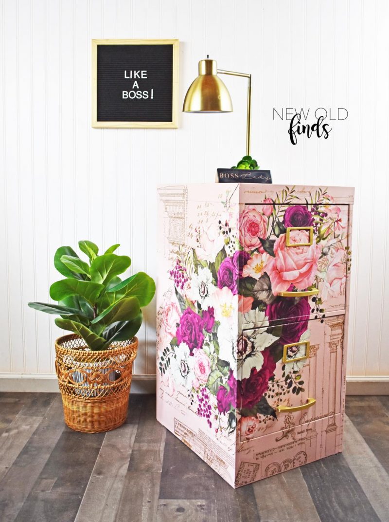 Who says you can’t bring some floral romance to the office? This “Like A Boss” filing cabinet by my friend Roz at New Old Finds is FAB! I absolutely love how she feminized this otherwise masculine boring cabinet.