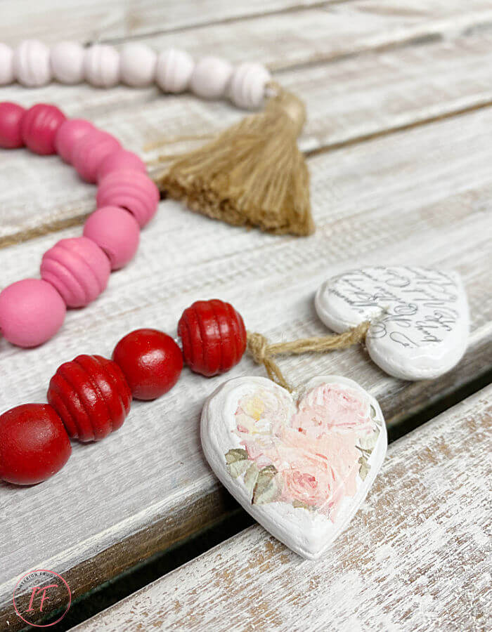 These Valentine Wood Bead Garlands were made from Marie at Interior Frugalista with Dollar Store Supplies!