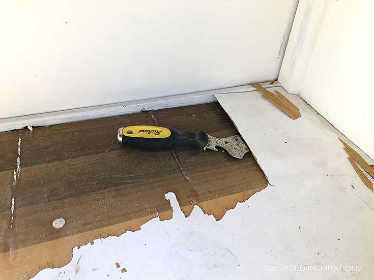 He also removed the veneer on the bottom of this cabinet and filled the holes/scratches to prep it for prime and paint.